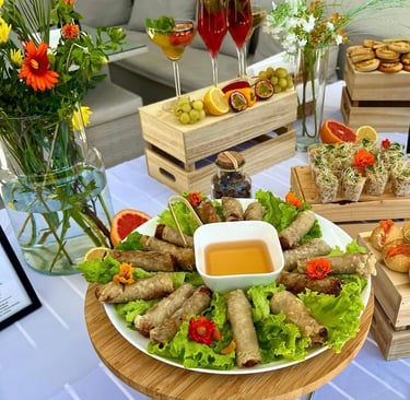 Transformez vos réceptions en véritables moments d’élégance et de convivialité grâce à notre service traiteur premium. Spécialistes des buffets décorés, nous allions une mise en place soignée avec des présentations uniques pour enchanter vos invités. Nous créons des ambiances raffinées en accord avec votre thème, tout en assurant une livraison fiable et ponctuelle sur le lieu de votre événement. Faites confiance à notre expertise pour faire de vos moments importants des souvenirs inoubliables.